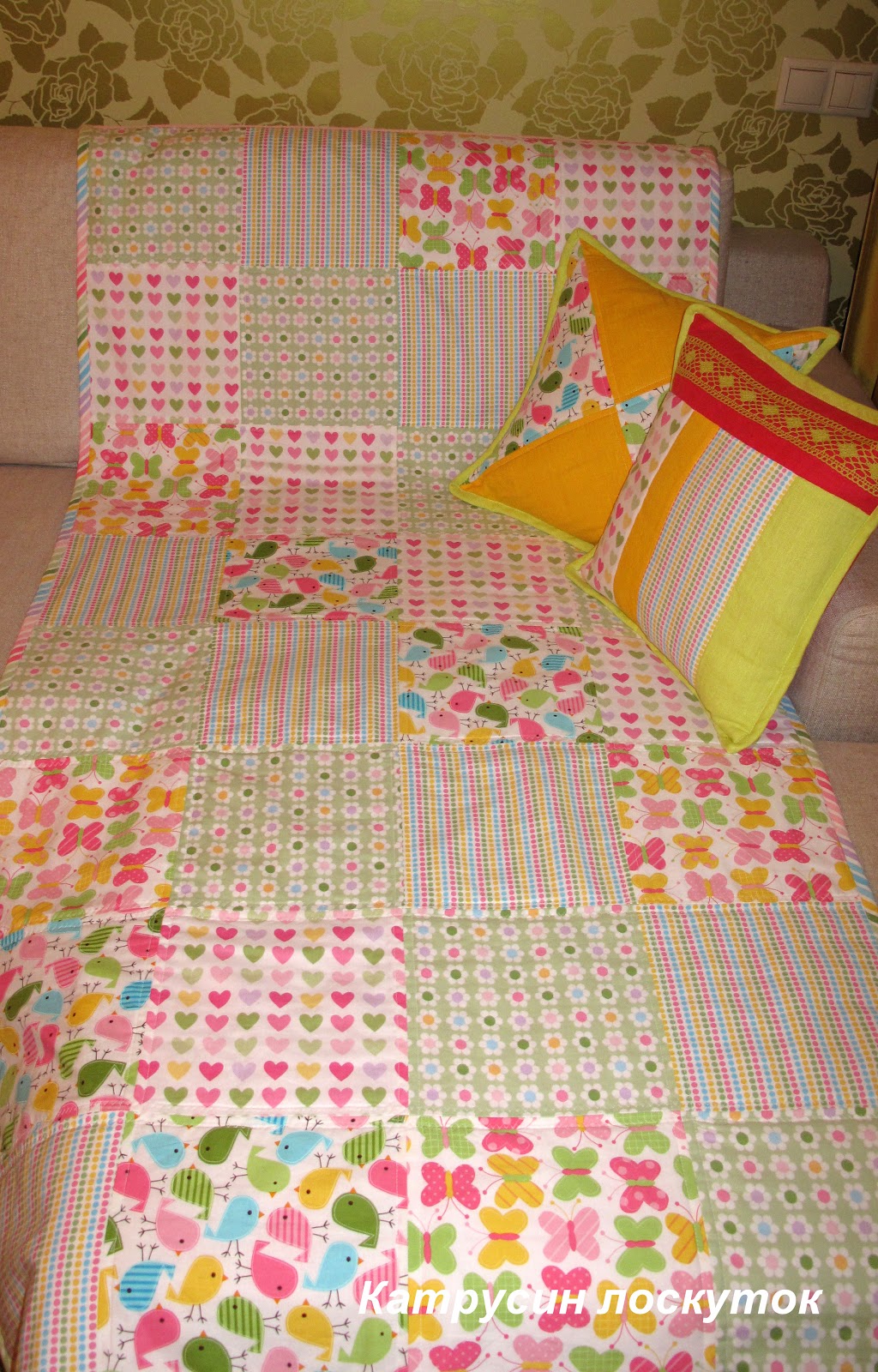 Катя, набор получился очень симпотичный! Я пока только мечтаю сшить такое покрывало, уже накупила ткани, синтепон, подклад, в общем осталось только сесть и начать.